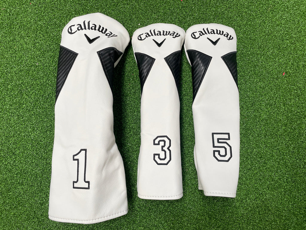 Protect your valuable clubs with these premium Callaway headcovers in classic white. Featuring durable construction and the iconic Callaway branding, these headcovers deliver superior protection against dings and scratches while maintaining a clean, professional look in your bag. The snug fit ensures your clubs stay secure during transport and storage, while the quality materials provide long-lasting performance round after round.